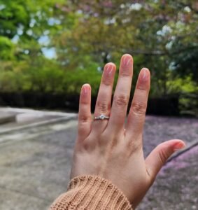 En Japón, destino favorito de Jeniffer, en una montaña Sagrada, Andres -sin previo aviso y con complices involucrados- decidió tomar el riesgo y pedirle la mano en la temporada de cerezos.